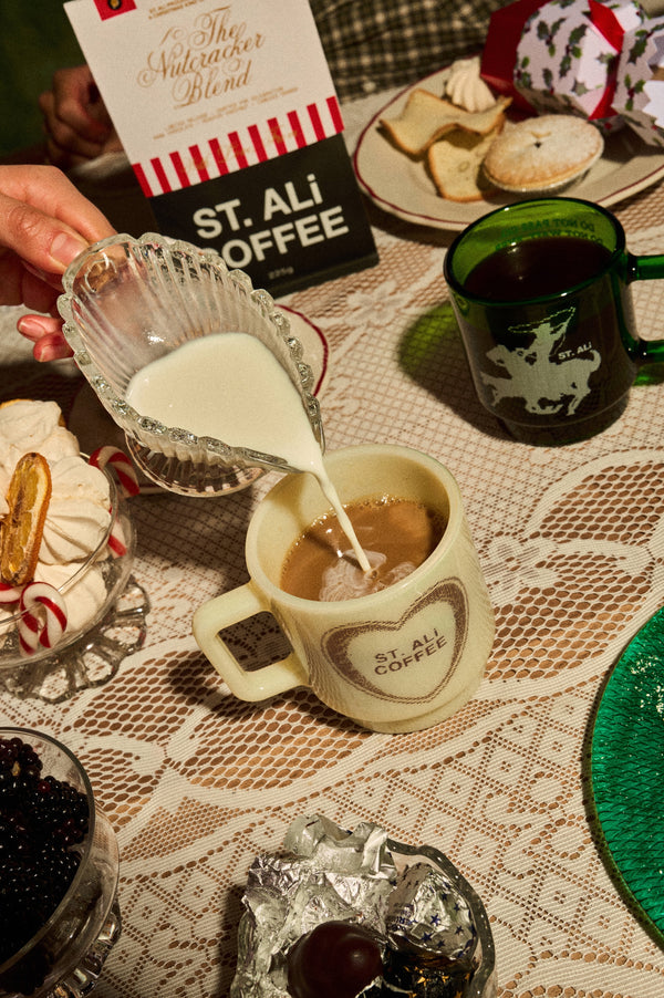 Every Cupid Olde Milk mug is individually pressed by a Japanese glass artisan using a traditional mold-press method. The soft whitish lines on the surface come from natural temperature shifts as the molten glass is pressed a subtle hallmark of genuine handmade glass that makes each Cupid mug slightly different from the next.