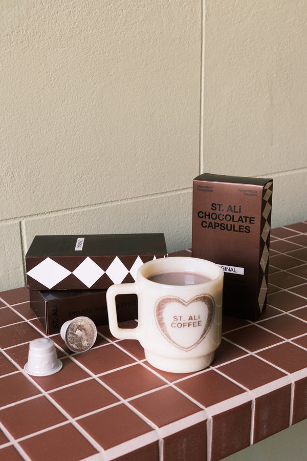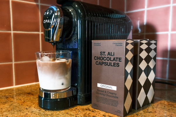EASY TO USE FOR CAFE-STYLE HOT CHOCOLATE IN SECONDS—JUST POP IN A CAPSULE AND POUR.