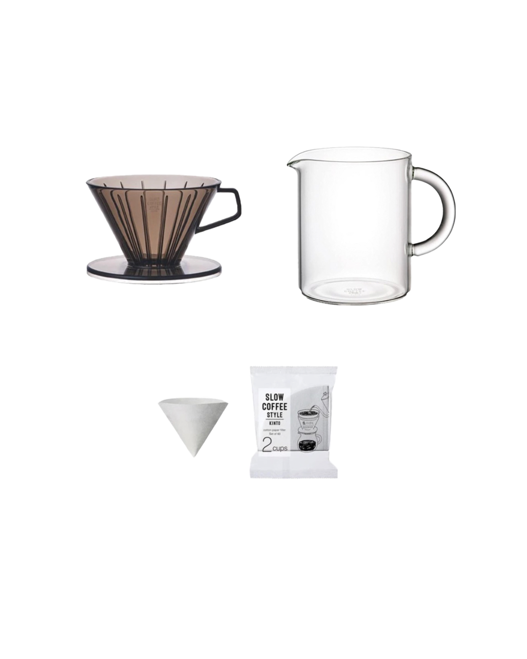 1 x 2-cup Kinto Brewer1 x Kinto 300ml Straight Side Coffee Jug Server1 x Kinto Paper Filters (60 pack)